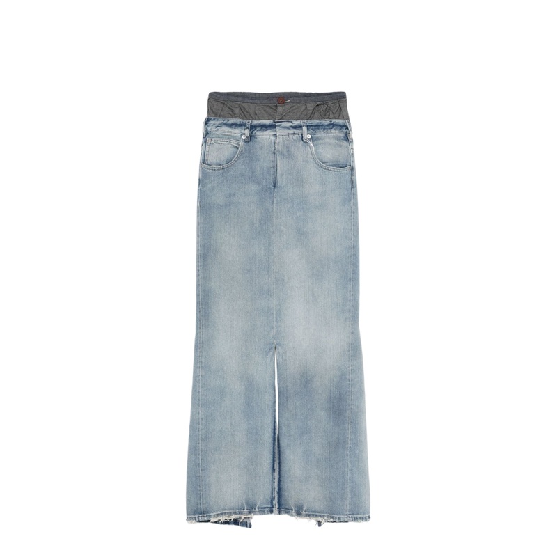 This Maison Margiela skirt is designed with meticulous attention to detail, featuring a concealed front button, hook, and zip fastening that contributes to its sleek silhouette. The classic five-pocket styling not only enhances its functionality but also pays homage to traditional denim craftsmanship. An additional front slit adds a touch of contemporary flair, allowing for ease of movement and a hint of playfulness.