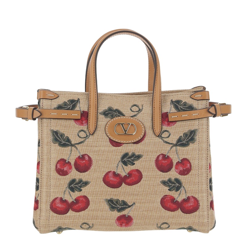 This Antibes Mini Tote Bag is constructed from luxurious Jacquard Raffia, beautifully accented with synthetic raffia and leather details that enhance its overall appeal. The chic beige color is effortlessly complemented by a vibrant all-over cherry motif, making it a stunning accessory for the spring/summer season of 2025. Ideal for both casual outings and sophisticated events, this bag adds a touch of charm to any ensemble.