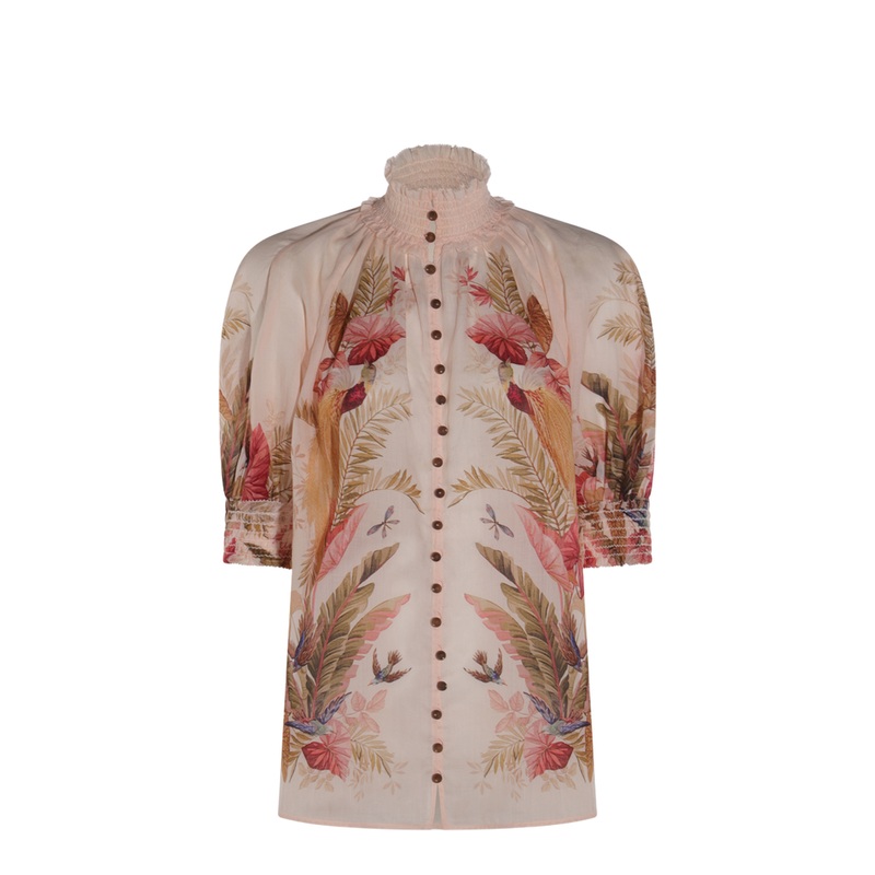 Elevate your wardrobe with the Ascension Printed Blouse by Zimmermann, a stunning piece that effortlessly blends luxury with contemporary style. This exquisite blouse is crafted from 100% Ramie, renowned for its breathable and lightweight properties, makin