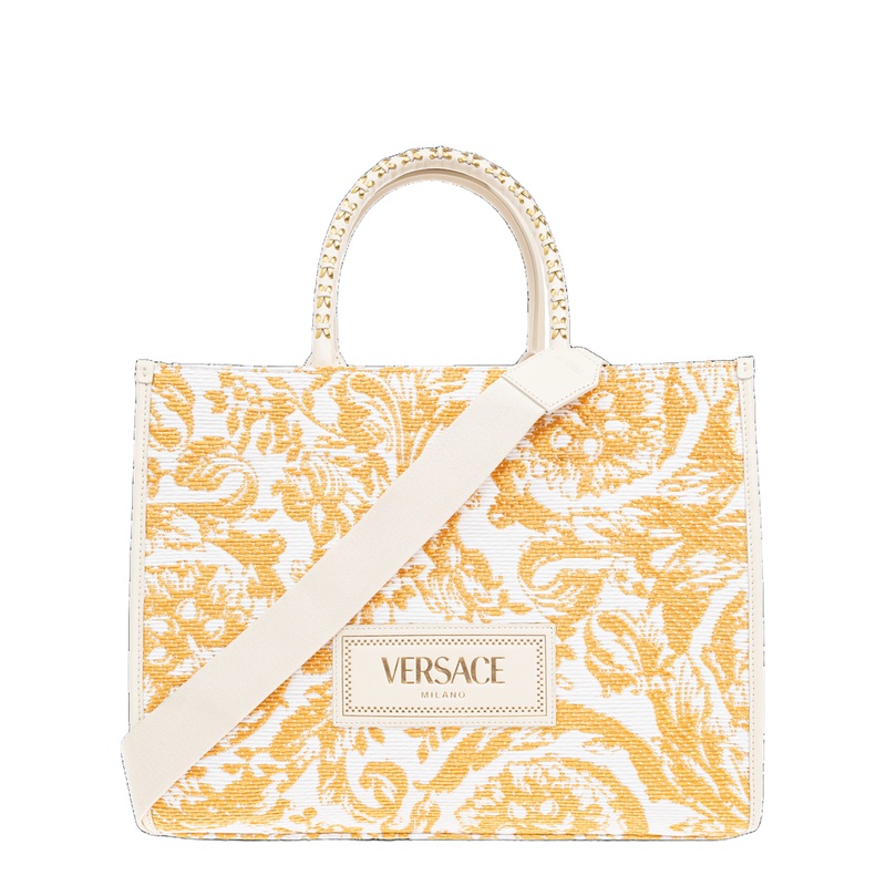 Indulge in the epitome of luxury with the Versace product from the exclusive collection featured on Barocco Athena Raffia Tote Bag. This exquisite piece embodies the brand's renowned craftsmanship and timeless elegance, making it a must-have for the discer