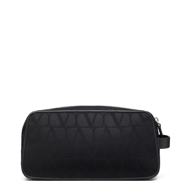 Introducing the exquisite Black Iconographe Bag from the prestigious fashion house of Valentino. This luxury beauty case is a statement piece that embodies elegance and sophistication, making it an essential addition to any discerning wardrobe. Crafted with meticulous attention to detail, the Black Iconographe Bag showcases an elegant fusion of durable nylon and sumptuous black smooth leather, reflecting both versatility and high-end style.