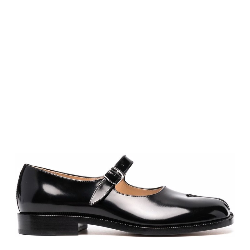 Black Leather Tabi Mary-Jane Shoes