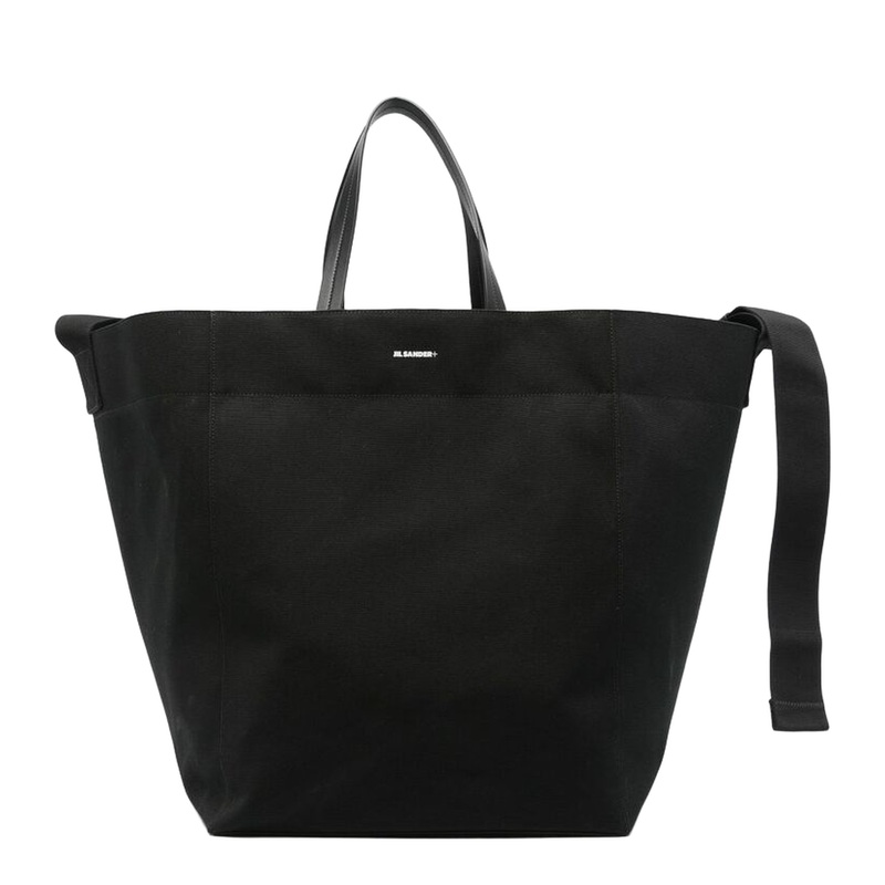 This stylish tote bag features an elegantly simple black color, making it versatile enough to pair with any outfit. The design is complemented by two top handles along with an adjustable shoulder strap, allowing for multiple carrying options to suit your preference. The JIL SANDER Canvas Tote Bag includes a concealed hook and zip closure for extra security, ensuring your belongings remain safe and sound while you’re on the go.