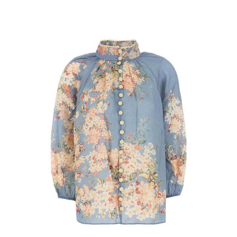 The intricate design reflects Zimmermann’s dedication to craftsmanship, with every detail thoughtfully considered. The blouse can be effortlessly paired with tailored trousers for a polished look or styled with your favorite denim for a more relaxed vibe.
