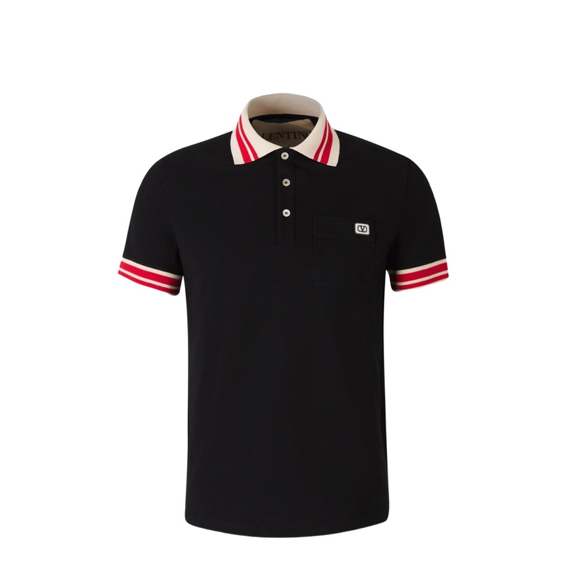 Be the first to review “Cotton Piqu Polo Shirt with VLogo Patch in Black”