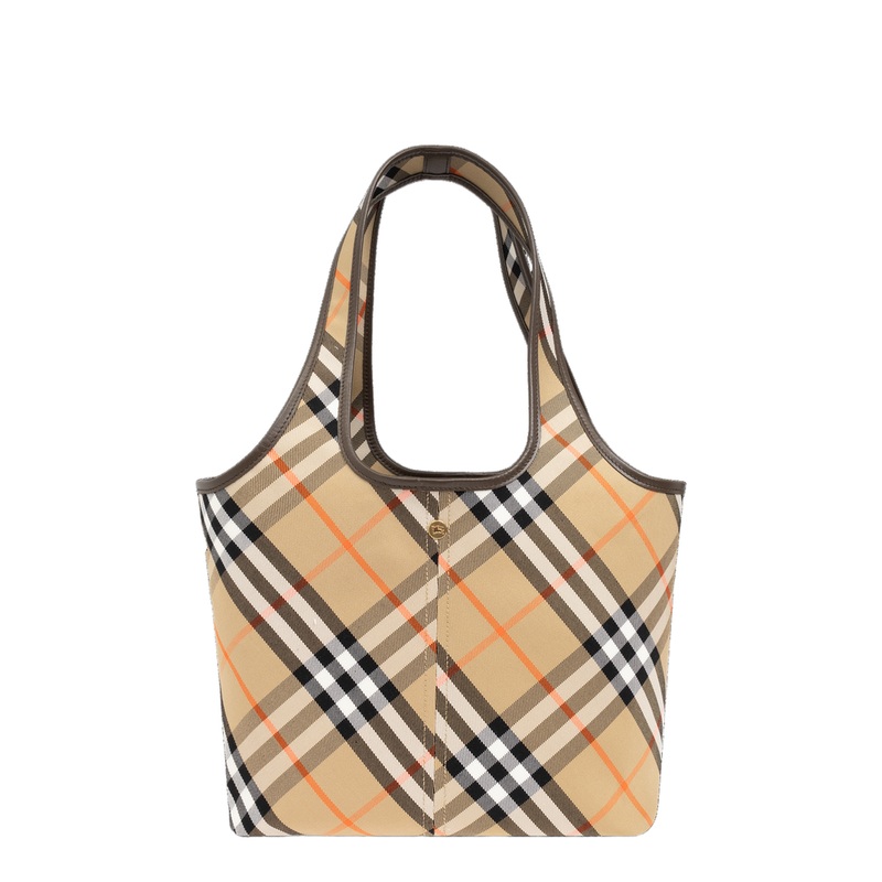 The Burberry Cotton Tote Bag features a stylish rectangular shape, offering a spacious interior lined with the iconic Burberry check pattern in hues of beige, black, red, and white. This beautiful design transforms the tote into an indispensable companion for shopping, business meetings, or social outings. The bags two wide handles are designed for comfortable shoulder carrying, providing convenience for the modern individual.