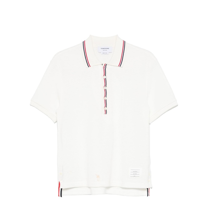 This polo is perfect for both the spring and summer seasons, making it a versatile staple that can be layered or worn on its own. The craftsmanship of Thom Browne shines through in the careful attention to detail and quality materials, ensuring that you not only look good but feel confident in this luxurious piece.