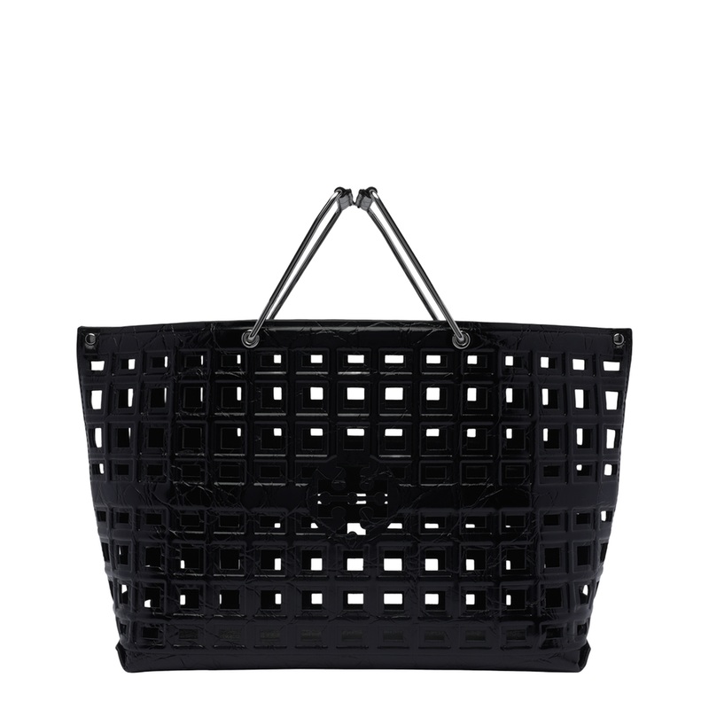 Explore the elegance of the TORY BURCH Croco Embossed Ella Market Handbag, a remarkable piece designed for the modern woman. This stunning handbag is crafted from 100% calf leather, ensuring durability while exuding sophistication. Its sleek black color complements a variety of outfits, making it an essential addition to your luxury fashion collection.