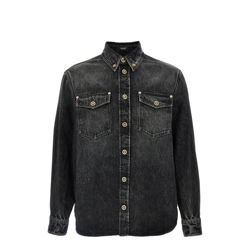 Introducing the Denim Jacket - Grey by the iconic brand Versace, a perfect blend of luxury and contemporary style. This exquisite piece is crafted from high-quality denim and cotton, ensuring not only a stunning appearance but also remarkable comfort and d