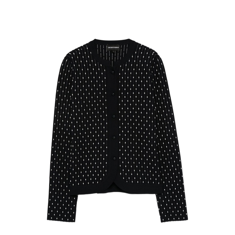 Introducing the Dotted Crewneck Cardigan from the esteemed Emporio Armani collection, where sophisticated design meets unparalleled craftsmanship. This exquisite cardigan epitomizes luxury fashion, designed for those who appreciate both style and comfort.