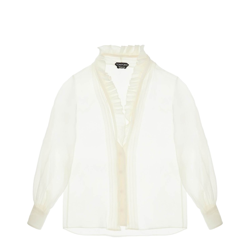 The Elegant White Shirt by Tom Ford is perfect for a variety of occasions, from sophisticated brunches to formal gatherings. Its versatility allows it to be paired effortlessly with tailored trousers or a flowing skirt, making it a must-have addition to any luxurious wardrobe.