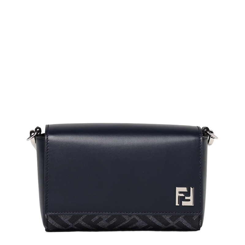 FF Squared Leather And FF Canvas Dark Blue Compact Bag