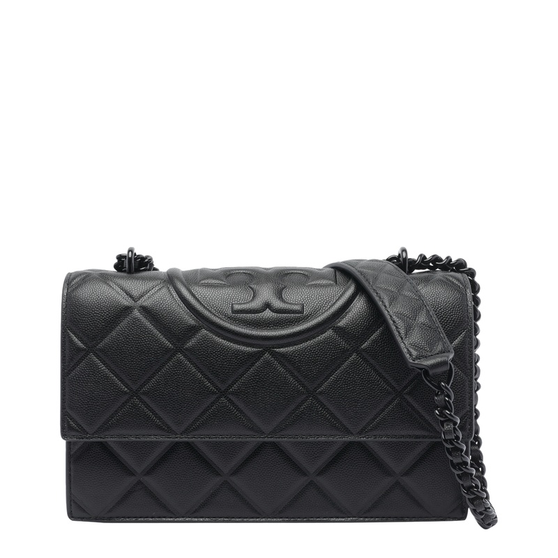 The Fleming Soft Grain Small Convertible Shoulder Bag by TORY BURCH is a chic accessory that embodies sophisticated style and convenience. Crafted from 100% calfskin leather, this luxurious bag features an exquisite embossed tone-on-tone logo that elevates its aesthetic. The elegant black color enhances its versatility, making it a perfect match for both casual and formal outfits. With dimensions of 22cm in width, 13.5cm in height, and 6.5cm in depth, it strikes an ideal balance between being compact and roomy enough to carry daily essentials.
