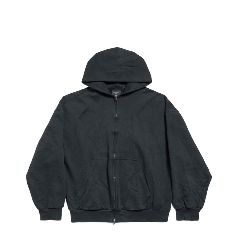 Elevate your streetwear wardrobe with the Flipped Uni Zip-Up Hoodie Regular Fit in Black Faded by Balenciaga. This exquisite piece combines luxury with functionality, making it a must-have for those who appreciate high-fashion essentials. Crafted from 100% premium cotton, this hoodie promises unparalleled comfort and breathability, perfect for both casual outings and relaxed evenings.