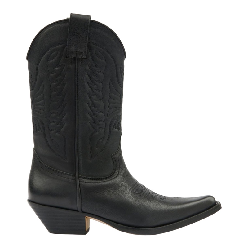 The Florence Cowboy Boots showcase a distinctive black pointed toe, enhancing their modern aesthetic while offering a timeless appeal. The thoughtful design includes a double pull-tab at the opening, allowing for easy wear and a snug fit, making these boots a practical choice for the fashion-forward individual. With a heel height of 5 cm (2 in), they provide the perfect lift, ensuring comfort without compromising style.