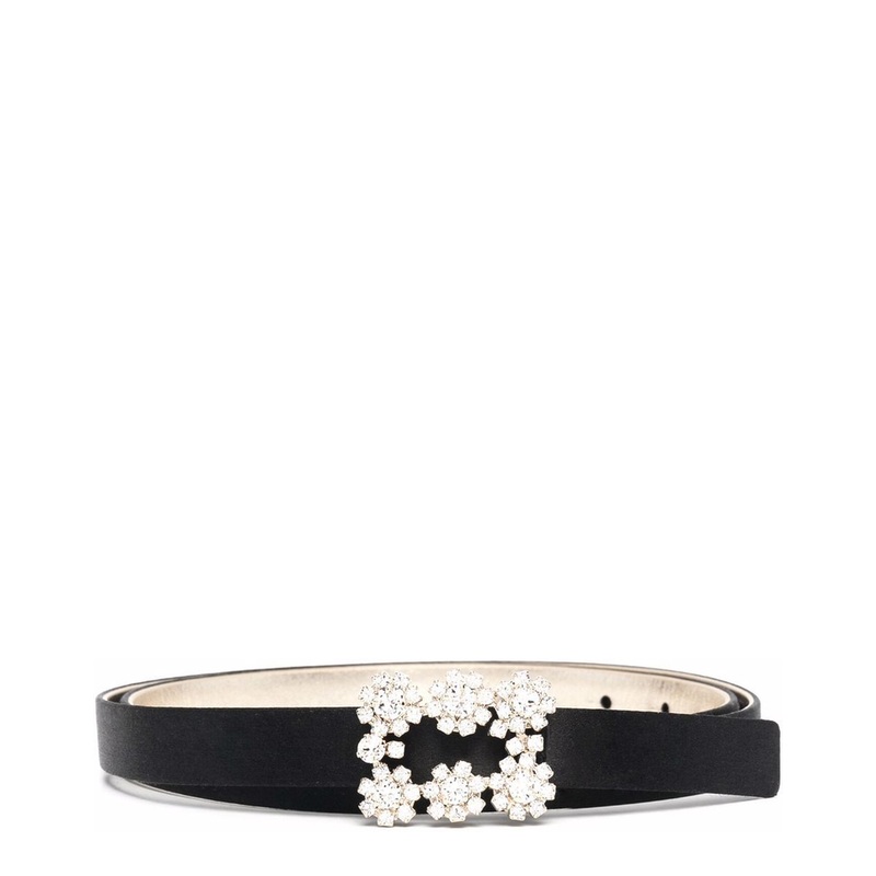 Indulge in the exquisite elegance of the Flower Strass Buckle Satin Belt by Roger Vivier. This luxurious accessory is a remarkable addition to any wardrobe, effortlessly elevating both casual and formal ensembles. Crafted from premium satin, the belt boast