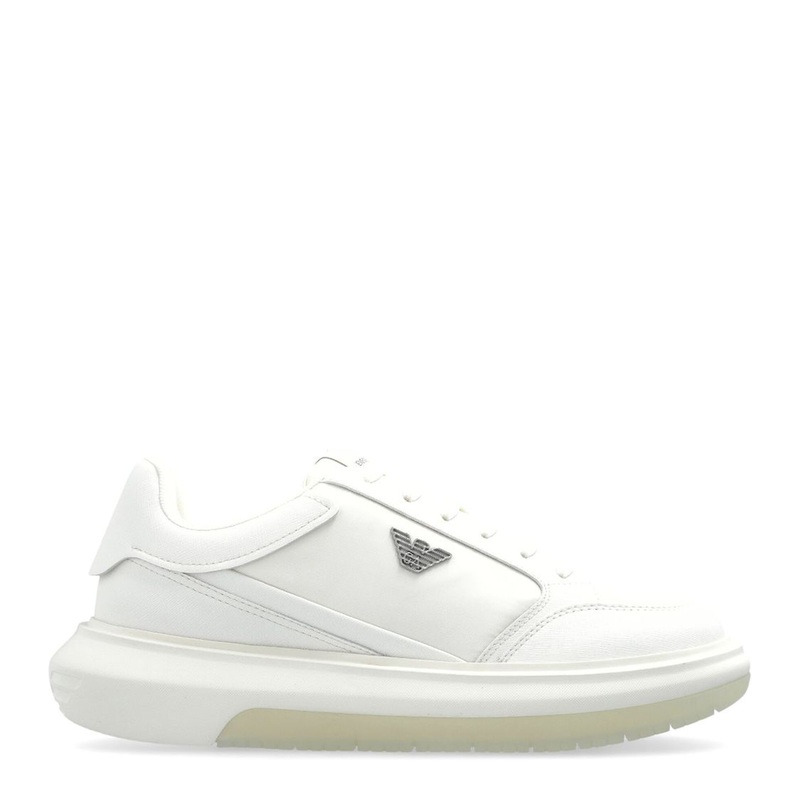 - Luxurious white leather upper for a timeless appeal
