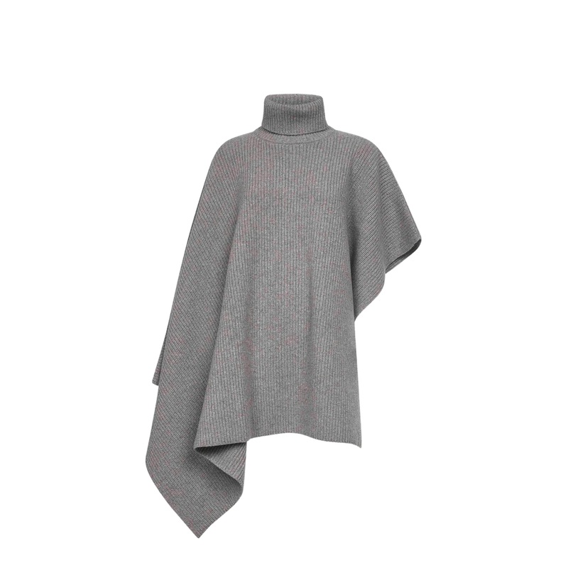 Key features of the Grey Melange Knit Asymmetric Turtleneck Poncho include: