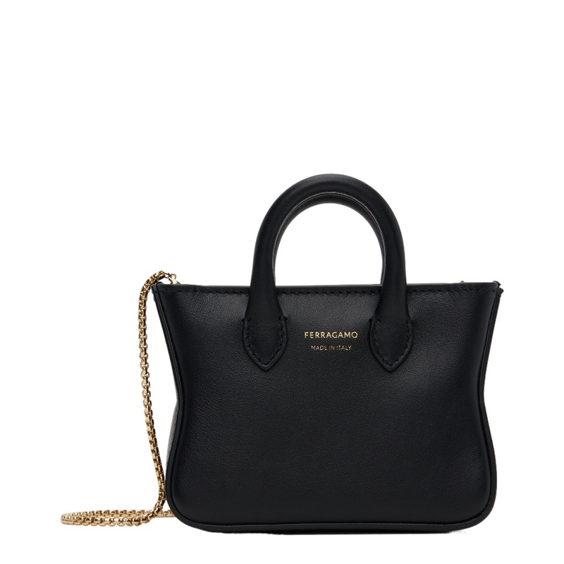 Indulge in the ultimate expression of elegance with the Handbag with Removable Chain Strap and Gold Logo by Ferragamo. This exquisite piece encapsulates the brand's commitment to luxury and sophistication, making it an essential addition to your fashion co