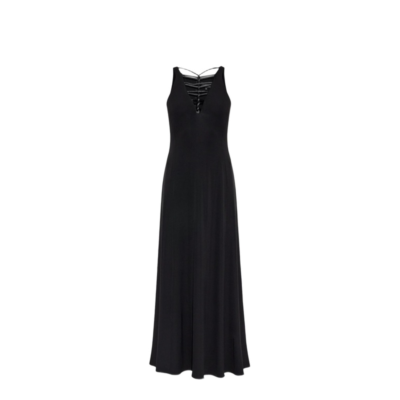 Whether youre dressing for a summer gala or a sophisticated winter gathering, the Emporio Armani Interlock Jersey Long Dress will make you feel confident and chic. Its timeless black hue offers versatility, allowing it to pair effortlessly with your favorite accessories and footwear.