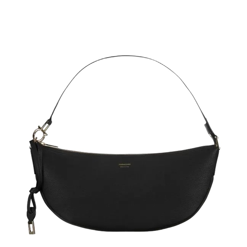 Elevate your accessory collection with the Large Black Half Moon Bag from the esteemed brand Ferragamo. This exquisite piece embodies the perfect fusion of timeless elegance and contemporary design, making it a must-have for fashion connoisseurs. Crafted f