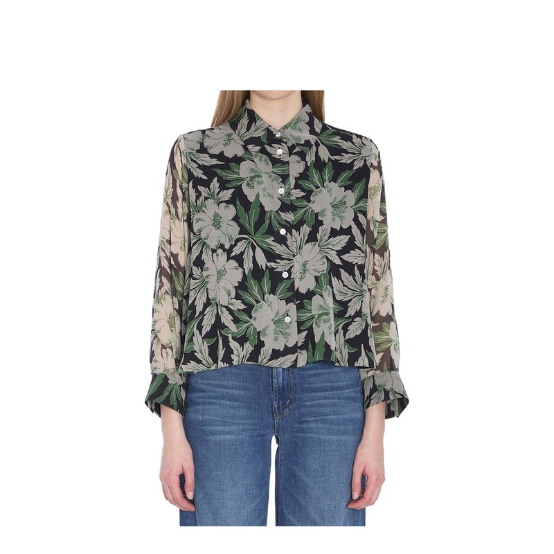 Experience the luxury of Loewe with this stunning shirt, perfect for the transitional seasons. Embrace the artistry and sophistication of the Light Embossed Silk Shirt with Hibiscus Floral Print and let your style bloom.