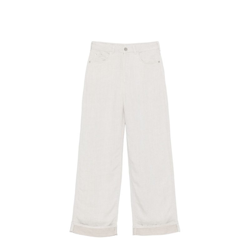 Elevate your wardrobe with the Linen Blend Wide-Leg Jeans from renowned brand Emporio Armani. Crafted with a meticulous blend of cotton and linen, these jeans offer a luxurious feel while ensuring breathability and comfort. The anthracite grey hue adds a touch of sophistication, making them a versatile choice for both casual outings and refined occasions.