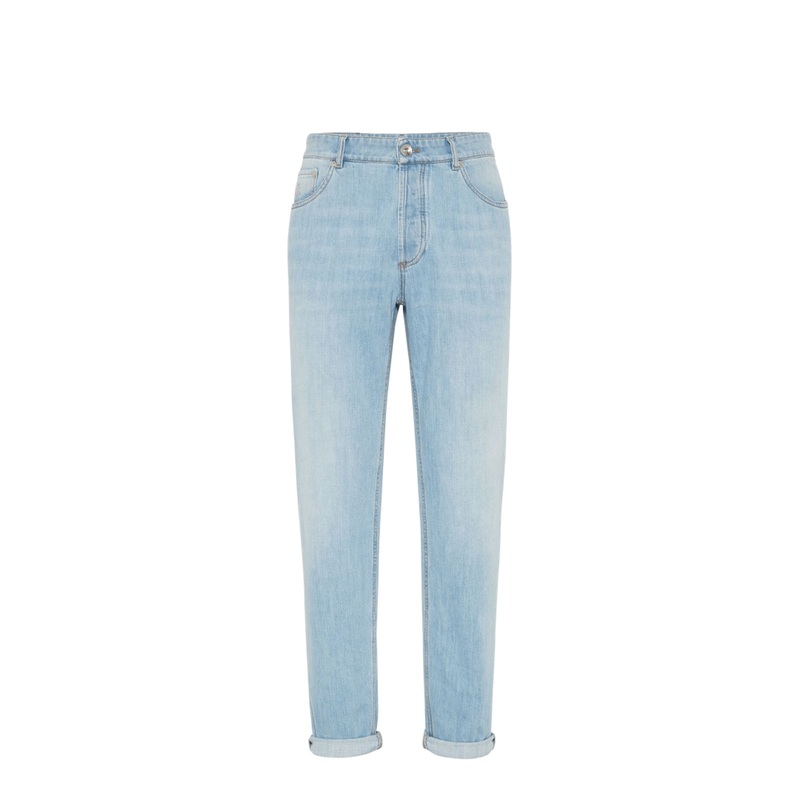 Indulge in the luxury of the Logo Embroidery Jeans, where timeless design meets modern elegance. With their exceptional quality and stylish appeal, these jeans are sure to become a go-to in your collection, exemplifying the essence of luxury fashion. Experience the craftsmanship of Brunello Cucinelli and redefine your style with these exquisite jeans.