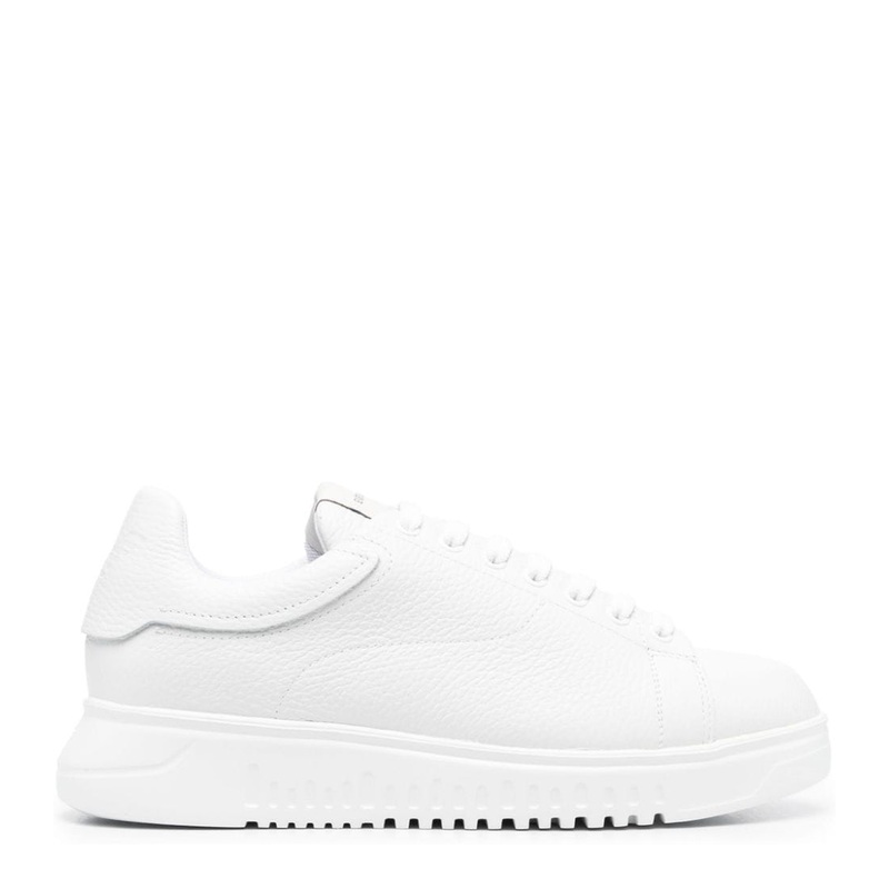Constructed from premium white calf leather, these sneakers feature a rich grained texture that not only enhances their aesthetic appeal but also promises durability and longevity. The round toe design offers a classic silhouette, while the front lace-up fastening ensures a secure fit, making them perfect for both leisurely strolls and urban adventures.