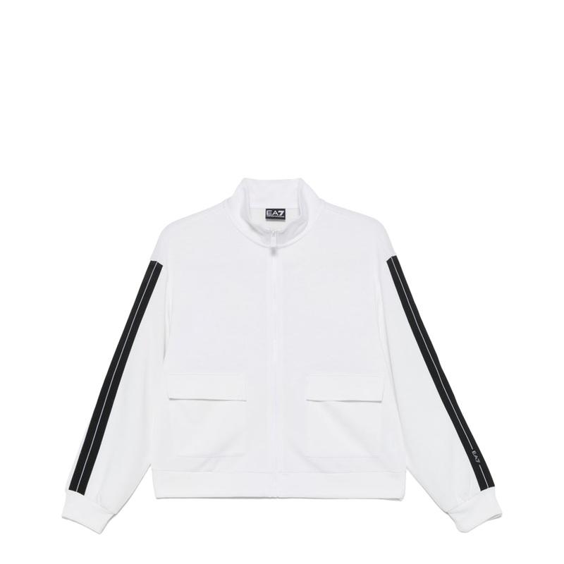 Elevate your casual wardrobe with the EA7 Logo Zipped Sweatshirt, an exquisite fusion of style and comfort. Crafted from a premium blend of cotton, elastane, chenille, and nylon, this sweatshirt embodies luxury while ensuring a perfect fit. The soft, breathable fabric provides an exceptional wearing experience, making it ideal for both lounging and everyday outings.