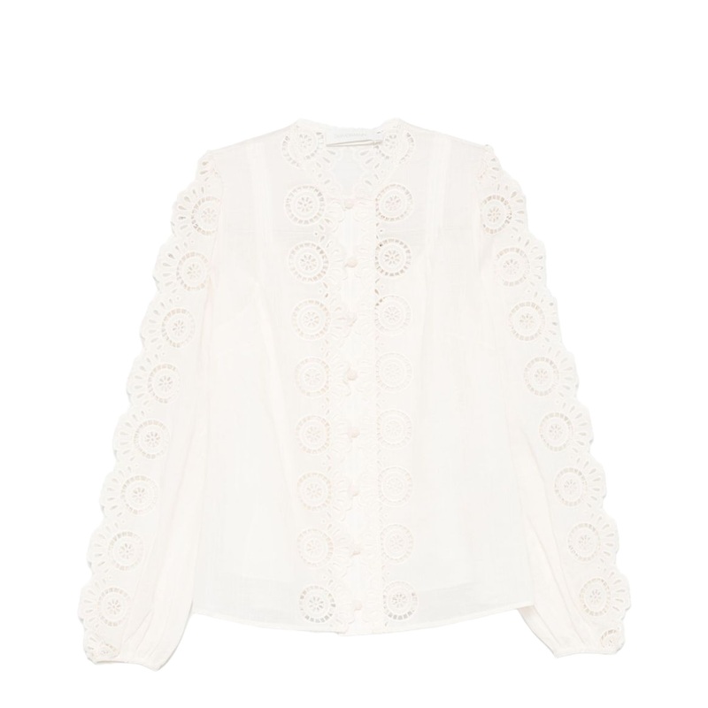 Introducing the exquisite Lucky Embroidered Blouse by Zimmermann, a stunning addition to your luxury fashion collection that embodies elegance and sophistication. Crafted from 100% cotton, this blouse combines comfort with a refined aesthetic, making it perfect for both daytime outings and evening soires.