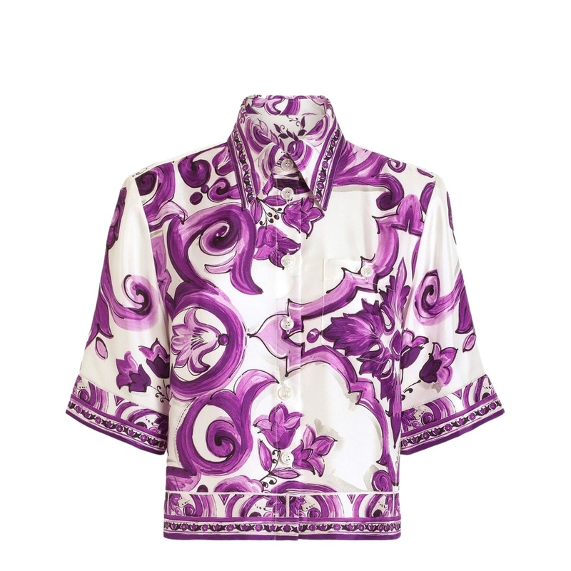 Experience the epitome of sophistication with the Majolica-print Silk Shirt in Multicolor by Dolce & Gabbana. Crafted from sumptuous silk, this luxurious shirt embodies the brand’s commitment to exquisite craftsmanship and timeless style. The rich amethyst purple hue, adorned with a stunning multicolor Majolica print, makes it a standout piece in any wardrobe. Ideal for both casual outings and formal events, this shirt effortlessly elevates your ensemble.