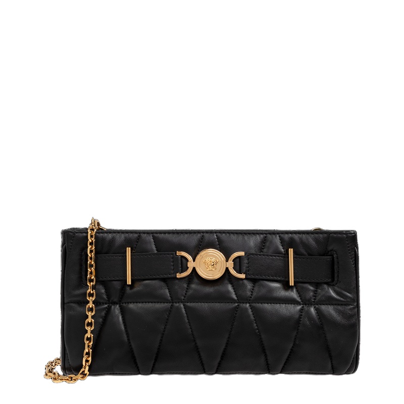 Indulge in the allure of Versace with the Medusa ’95 Clutch Bag, and experience the perfect fusion of style and sophistication. With its unique blend of materials and exceptional design, this piece is sure to become a staple in your luxury collection. Treat yourself to the elegance of Versace and embrace a new standard of fashion with the Medusa ’95 Clutch Bag.