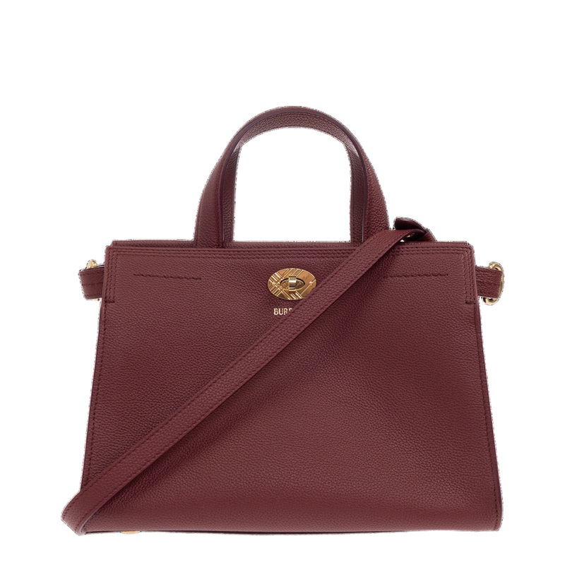 The Mini Cotswolds Tote is crafted from premium full-grain leather, featuring a fine, grained texture that not only elevates its aesthetic but also ensures durability for the discerning client. The captivating burgundy hue draws the eye, while the gold, decorated clasp engraved with the letter “B” adds a unique touch that perfectly complements the overall design. The front of the bag discreetly displays the iconic Burberry logo, cleverly tucked beneath the flap for an understated yet sophisticated look.