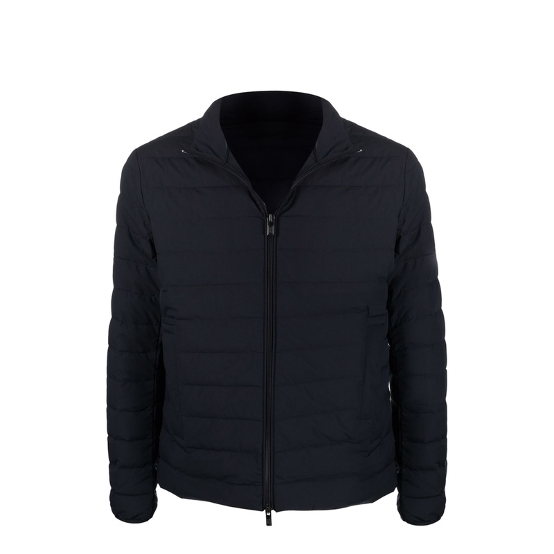 Elevate your outerwear collection with the Navy Blue Feather Down Padded Jacket from renowned brand Emporio Armani. This luxurious jacket is designed for the modern man who appreciates sophistication and functionality in equal measure. Crafted from premium
