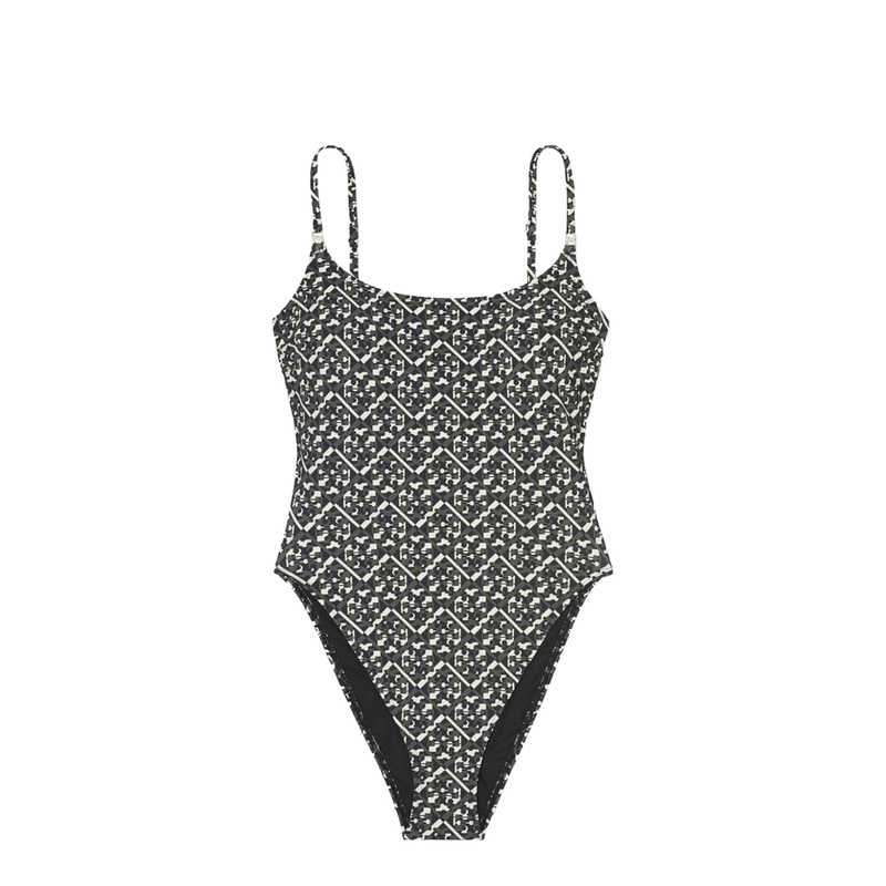 Elevate your swimwear collection with the luxurious One Piece Swimsuit from Tory Burch. This exquisite swimsuit seamlessly combines style and sustainability, crafted from a high-quality recycled nylon blend that not only feels incredibly soft against the s