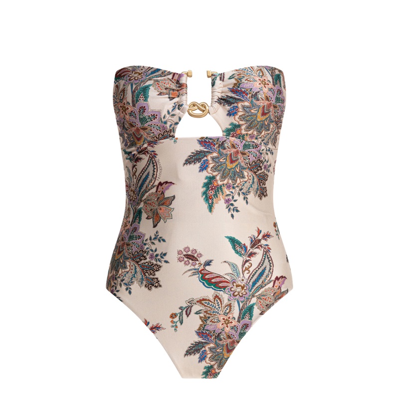 Introducing the Rhiannon Printed Swimsuit by Zimmermann, a quintessential piece that embodies luxury and sophistication. This exquisite swimsuit is designed for the discerning individual who appreciates fine craftsmanship and unique styling. The Rhiannon P