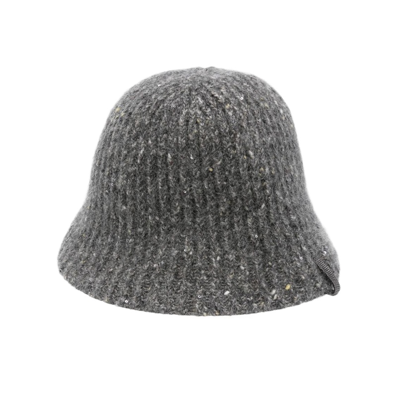 Designed in a timeless dark grey hue, the Ribbed Hat features a ribbed knit pattern that adds a touch of elegance and sophistication to your look. The round crown design ensures a perfect fit, accommodating a circumference of 56.0 centimeters, making it suitable for various head sizes. One of its standout features is the subtle yet striking sequin embellishment, which lends a hint of sparkle, perfect for both day and night occasions.
