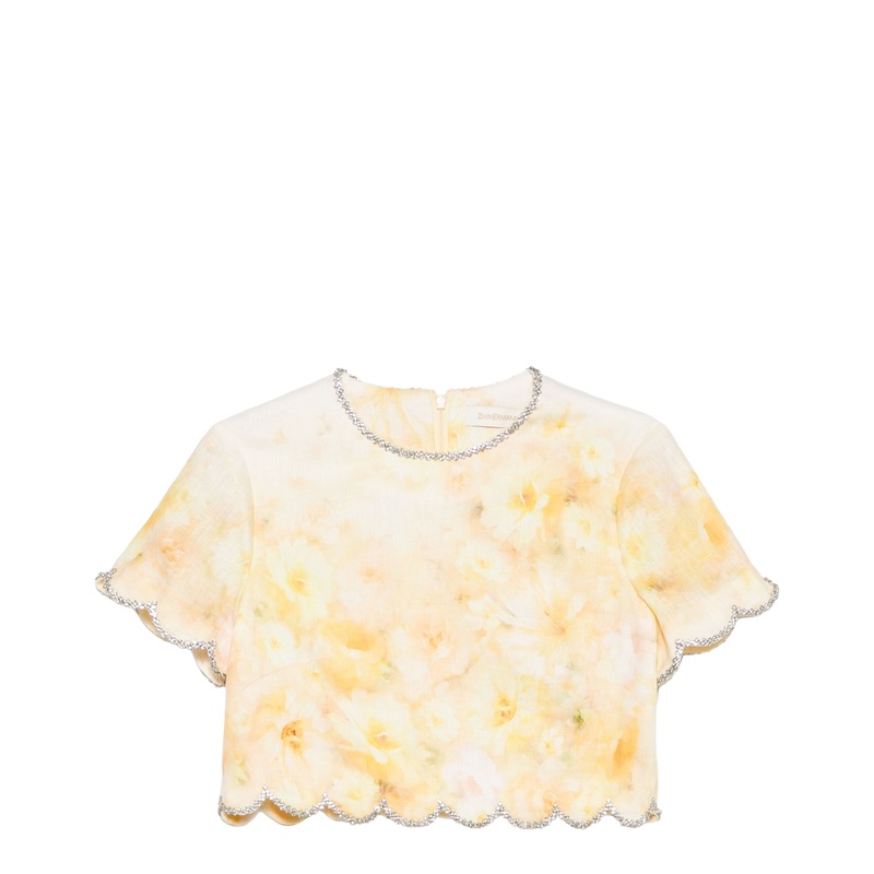 Elevate your wardrobe with the Crush Scalloped Top by Zimmermann, a stunning piece that embodies the essence of luxury fashion. Designed for the modern woman, this top is crafted from a blend of 100% linen and 100% cotton, ensuring that you experience both