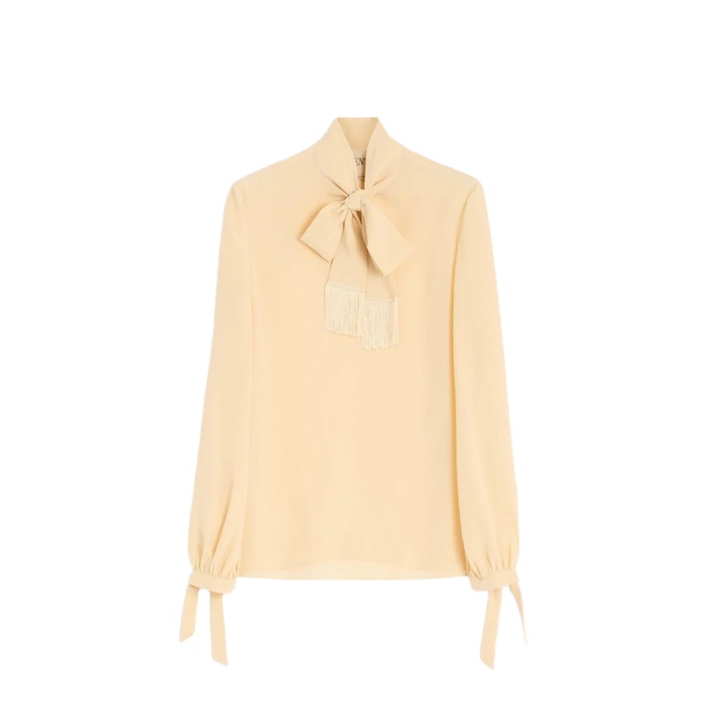 Indulge in the epitome of luxury with the Silk Blouse from the renowned brand Valentino. Crafted from exquisite crepe de chine silk, this blouse embodies elegance and sophistication, making it an essential addition to your wardrobe. The delicate light yell