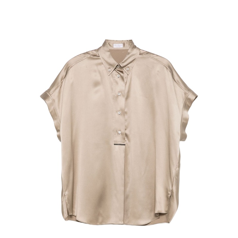 Indulge in the epitome of luxury with the Silk Shirt from the prestigious brand Brunello Cucinelli. Crafted from an exquisite blend of premium fabric, this shirt showcases the perfect marriage of woven polyester, silk, and satin, ensuring a sophisticated d