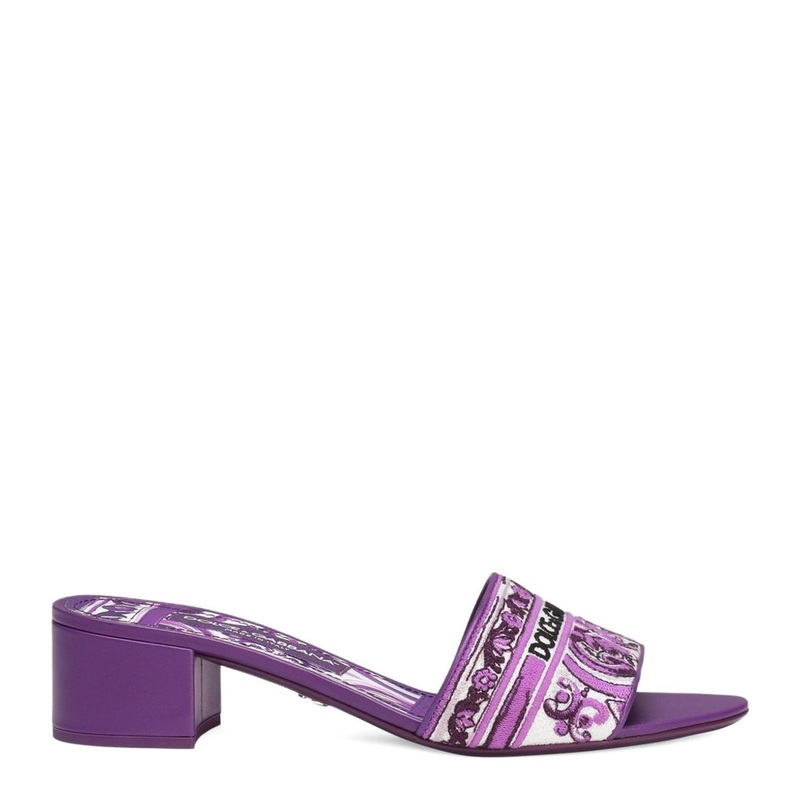 Indulge in the exquisite craftsmanship of the Dolce & Gabbana Slides with Thread Embroidery in Multicolor. Perfectly embodying the essence of luxury fashion, these slides are a must-have addition to your footwear collection. The vibrant violet purple hue a