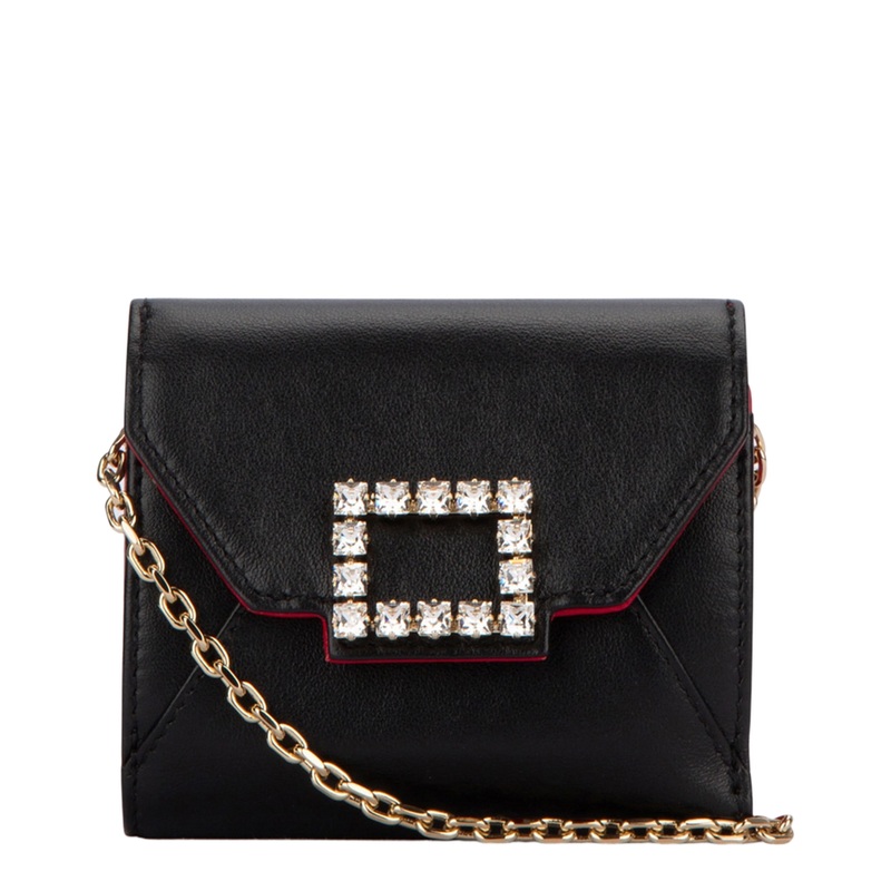Indulge in the elegance of the Strass Buckle Wallet in Leather by Roger Vivier, a quintessential accessory that embodies luxury and sophistication. Crafted with impeccable attention to detail, this wallet is designed for the modern connoisseur who apprecia