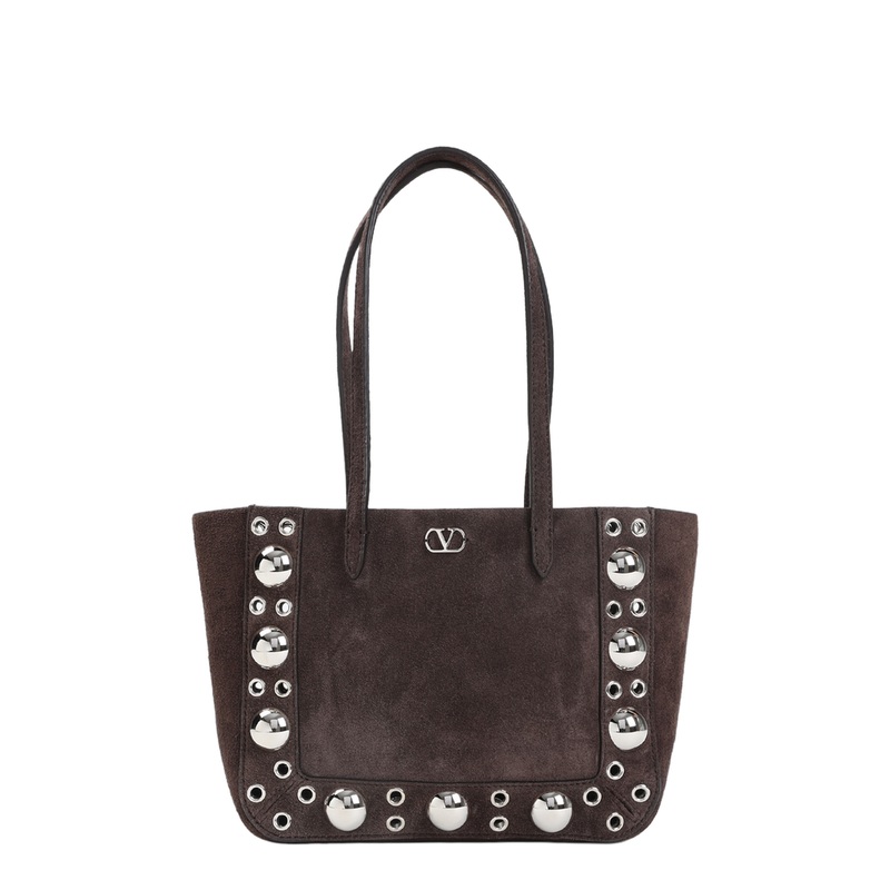 The Suede Nellcte Tote Bag by VALENTINO GARAVANI is a luxurious addition to your autumn/winter wardrobe, encapsulating elegance and practicality in a stunning design. Crafted from 100% high-quality suede, this Suede Nellcte Tote Bag exudes sophistication with its soft brown finish and exquisite metallic studs, setting it apart as a statement piece for women who appreciate refined fashion.