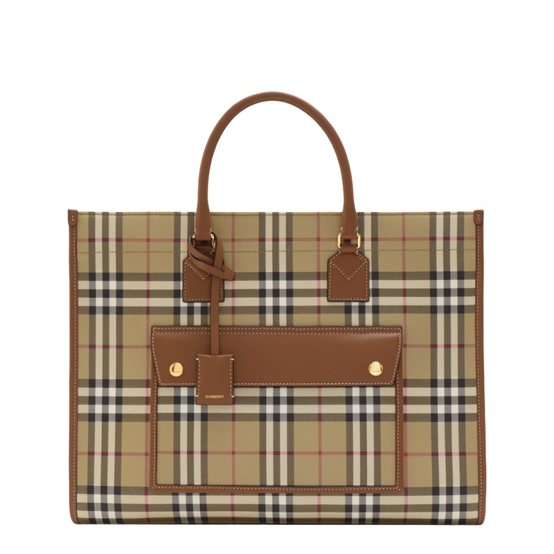 The Tote Bag Freya Medium features an exquisite all-over check pattern that pays homage to Burberry’s iconic heritage. Its dimensions of 11.81 inches in width, 15.75 inches in height, and 6.3 inches in depth provide ample space for your essentials while maintaining a sleek silhouette.