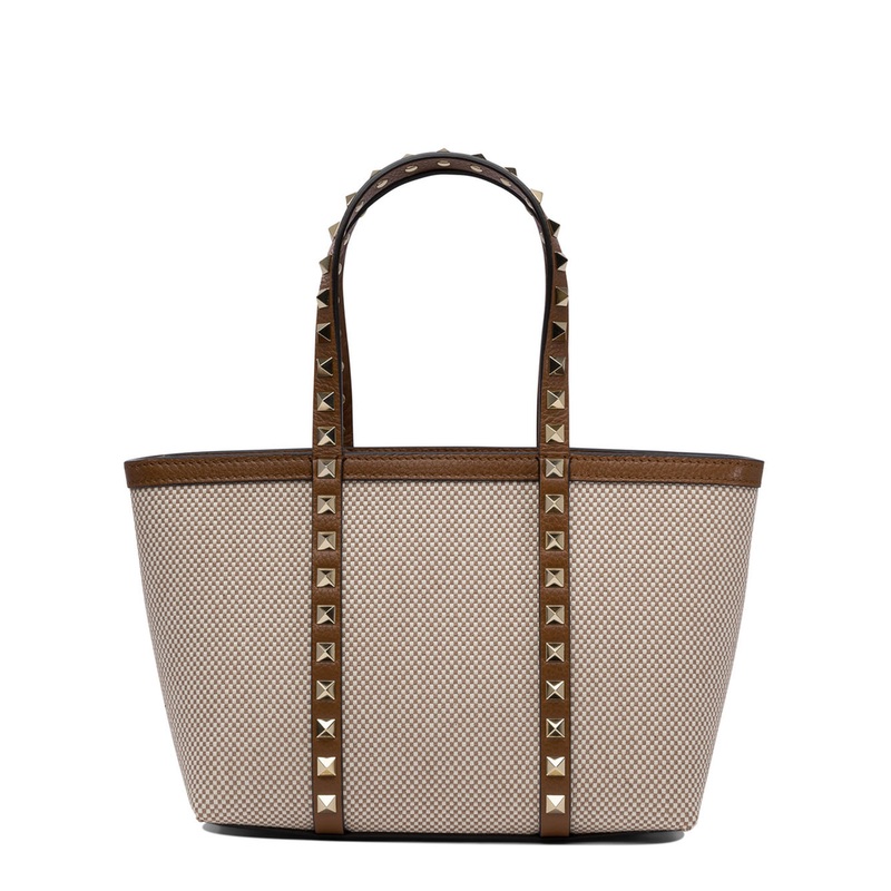 The VALENTINO GARAVANI Two-tone Canvas Medium Rockstud Handbag is a stunning addition to any luxury fashion collection. Designed for the modern woman, this exquisite handbag is crafted from 90% canvas and 10% leather, offering a seamless blend of durability and elegance. Sporting a chic beige color, it showcases a striking two-tone design that effortlessly elevates any outfit, making it the perfect accessory for both casual outings and formal events.