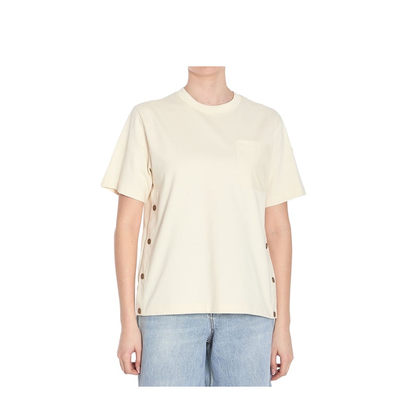 Elevate your wardrobe with the exquisite White Cotton T-Shirt with Pocket from the prestigious brand Moncler. Crafted with meticulous attention to detail, this luxurious piece redefines casual elegance, making it a must-have for your mid-season collection. Made from 100% premium cotton, its soft jersey fabric ensures comfort while maintaining a stylish silhouette.