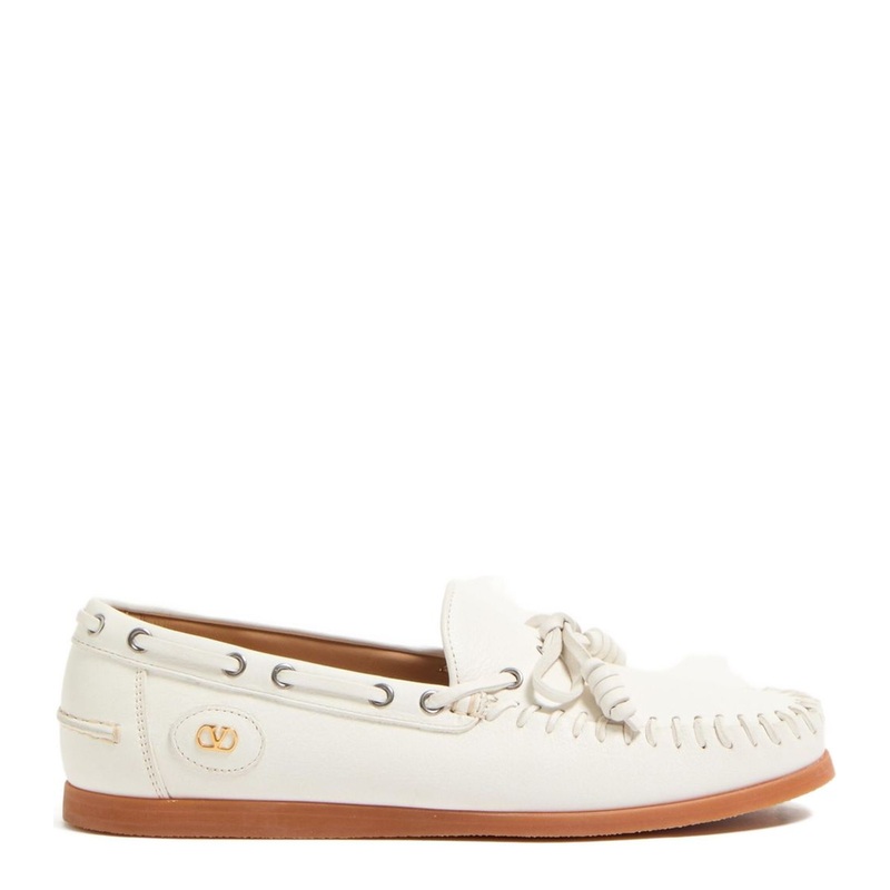 Indulge in the epitome of luxury with the White Slip-On Style VLogo Signature Bow Detailing Flat Rubber Sole by Valentino. This exquisite footwear embodies the perfect fusion of elegance and contemporary design, making it an essential addition to any styli