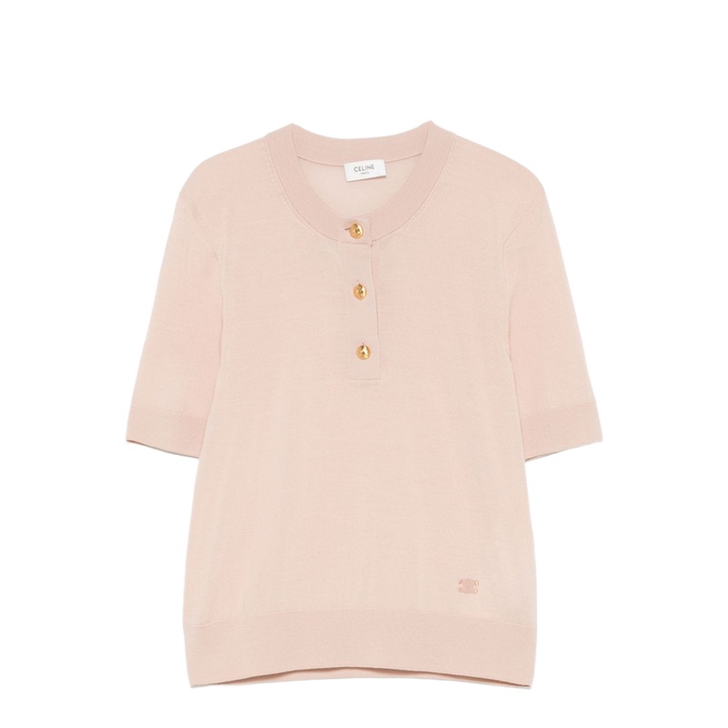 This Celine sweater features a timeless crewneck style, complemented by short sleeves that add a modern touch. The button closure detail enhances its sophistication, allowing for versatile styling options whether you choose to wear it layered or on its own. The multi-hued knit adds a vibrant energy, making it perfect for both casual outings and more polished events.
