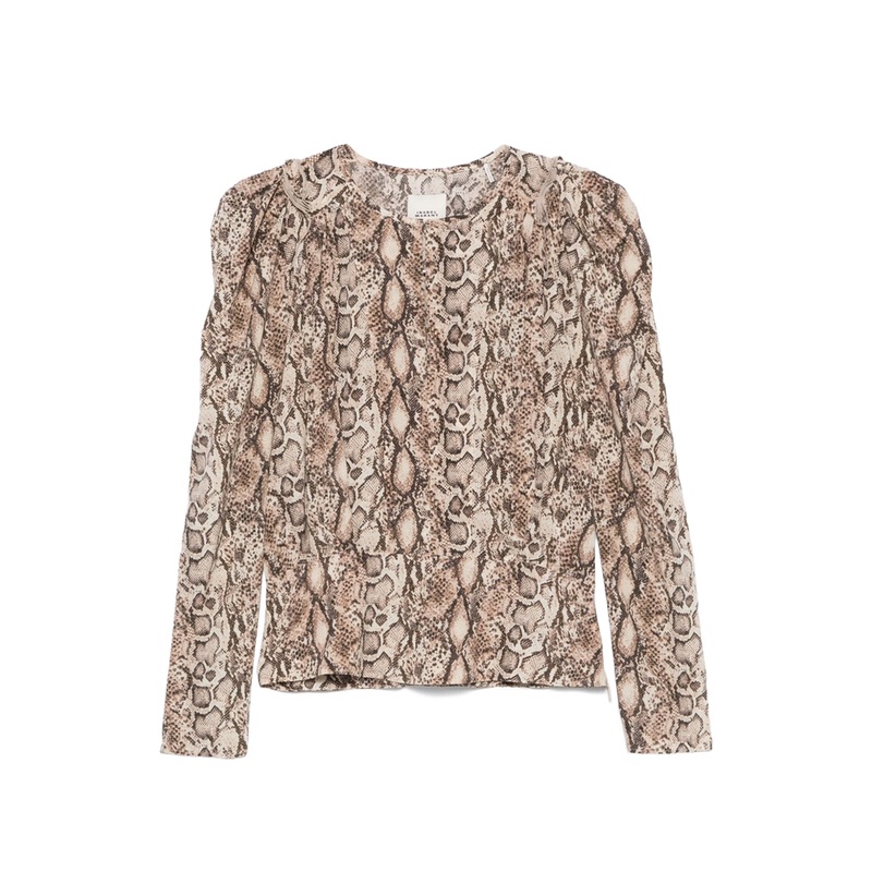 Elevate your wardrobe with the exquisite Zarga Printed Silk Top by Isabel Marant, a perfect fusion of elegance and contemporary style. Crafted from the finest silk blend, this luxurious top features a stunning beige hue that seamlessly complements any ense